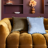 – Burly Blue (45 x 45 cm): vierkant kussen in fris blauw katoen met subtiele franjes