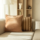 Caramel Crunch (45 x 45 cm): een elegant effen kussen in warme karamel- / beige tint. Subtiel, tijdloos en een rustgevende aanvulling op de set.