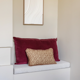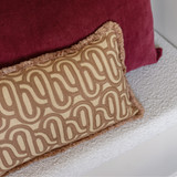De franjes en swirl-print geven het beige kussen net dat beetje extra, terwijl het mauve kussen zorgt voor een rijke, rustige basis. Samen zijn ze een tijdloze keuze die je eenvoudig kunt combineren met andere kleuren en materialen.