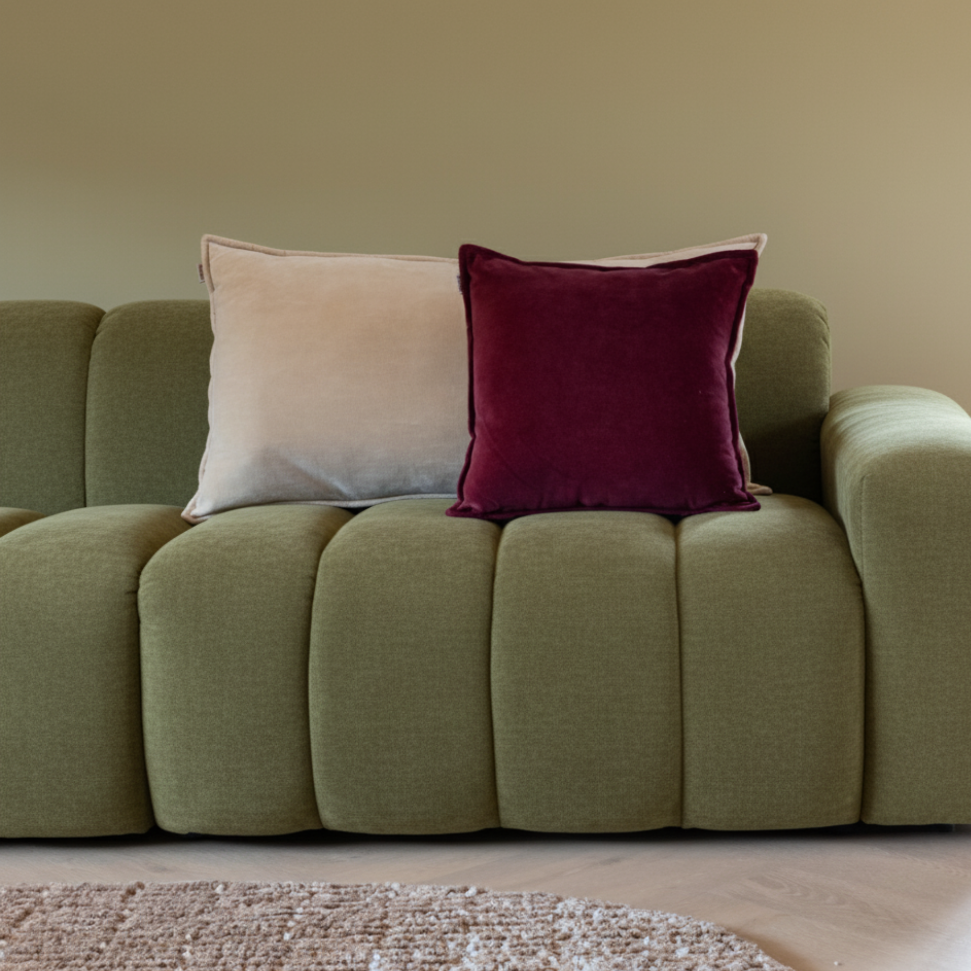 De kussens in de Fiene‑set zijn vervaardigd uit hoogwaardige materialen en voelen zacht en comfortabel aan. Het butter‑beige kussen biedt een rustige, neutrale basis die veelzijdig combineerbaar is. Het mauvekleurige kussen voegt kleur, zachtheid en karakter toe, en zorgt voor subtiele elegantie. Dankzij de rustige kleurcombinatie past deze set bij uiteenlopende interieurstijlen — van modern en minimalistisch tot klassiek en Japandi.