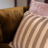 – Bold Beige Strepen (40 x 60 cm): een speels gestreept kussen met franjes voor extra textuur