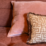 Deze set is perfect voor een bank, bed of fauteuil en voegt een waanzinnige touch toe aan elke ruimte. De zachte roze tint straalt rust uit, terwijl de beige details zorgen voor warmte en karakter.