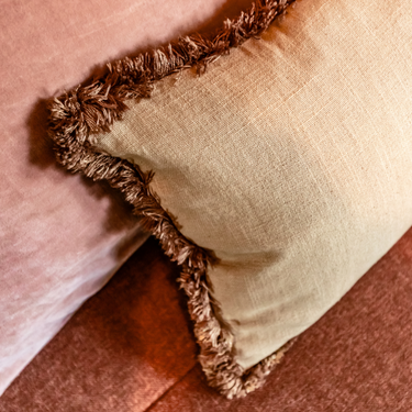 Deze kussens zijn niet alleen stijlvol, maar ook van hoge kwaliteit. Het roze kussen is gemaakt van duurzaam katoen en biedt een subtiel luxueuze uitstraling. Het beige kussen is afgewerkt met een elegante print en speelse franjes, wat een speels accent geeft aan je interieur. Door de hoogwaardige materialen voelen beide kussens zacht en comfortabel aan.