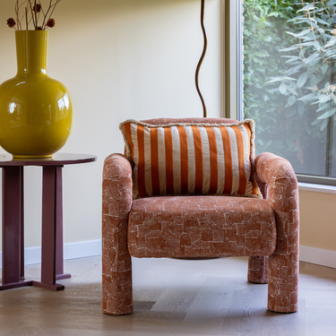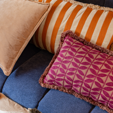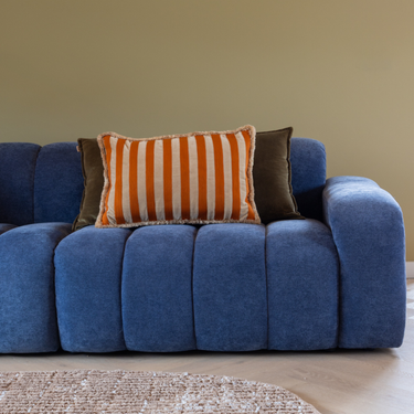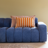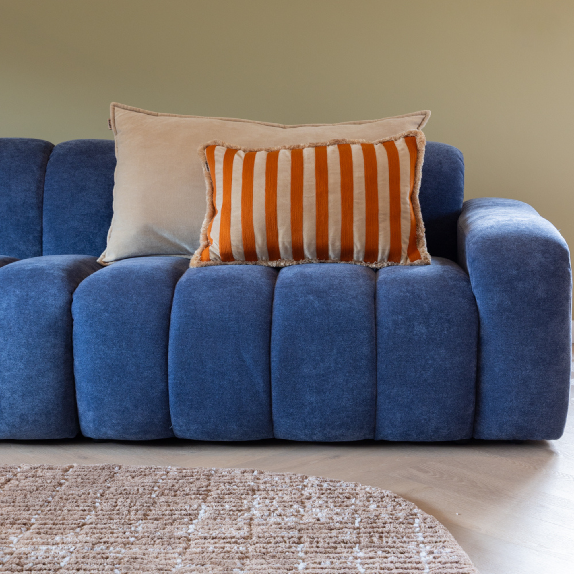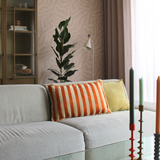 De maat van 40 x 60 cm is ideaal om te combineren met kleinere kussens of andere kussensets. De strepen zorgen voor een grafisch accent, terwijl de warme basis zorgt voor harmonie en balans.
