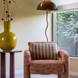 Met zijn streeppatroon, decoratieve franjes en effen achterkant is dit kussen een combinatie van rust en speelse details. De lichte beige tinten werken prachtig samen met natuurlijke materialen zoals hout en linnen, maar geven ook een subtiele twist aan moderne interieurs. Of je nu kiest voor de print- of de effen kant, het kussen past zich moeiteloos aan jouw stijl aan. Ideaal te combineren met andere kussens