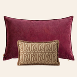 Das Ava-Set kombiniert das XL-Kissen „Magical Mauve“ (50 x 90 cm) mit dem 30 x 50 cm großen Kissen „Bold Beige“ mit Wirbelmuster und Fransen. Der tiefe Mauveton erzeugt ein Gefühl von Ruhe und Tiefe, während das „Bold Beige“ mit seinem grafischen Muster und seiner Textur einen kräftigen, warmen Akzent setzt.