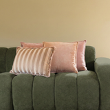 De Evi set brengt een zachte, warme kleurenmix samen: het XL-kussen Pretty in Pink (50 x 90 cm), het 45 x 45 cm kussen Caramel Crunch en het 40 x 60 cm kussen met strepen en franjes in Bold Beige. De combinatie van roze, beige en een subtiel gestreept detail zorgt voor een elegante, frisse uitstraling die perfect past in een sfeervol en harmonieus interieur.