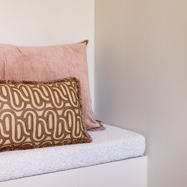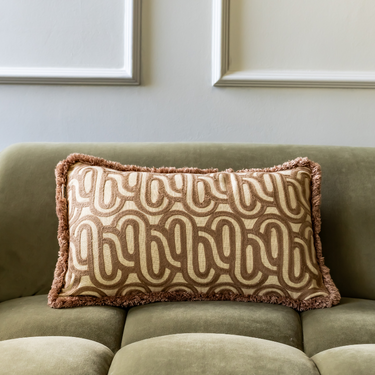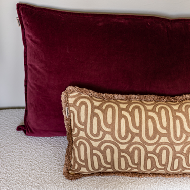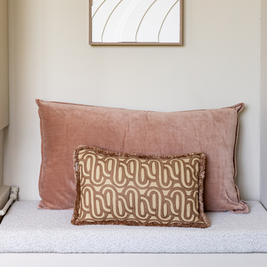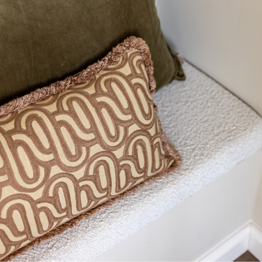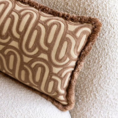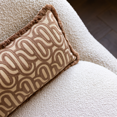 PRE-ORDER Kotabo sierkussen met swirl print en franjes – 30 x 50 cm – Bold Beige