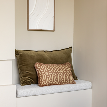 Dit kussen geeft direct diepte en textuur aan je bank, fauteuil of bed. De sierlijke print voegt een subtiel speels detail toe, terwijl de beige tint zorgt voor een rustige basis die overal bij past. Dankzij de effen achterkant bepaal je zelf of je voor een opvallende of juist meer ingetogen look gaat.
