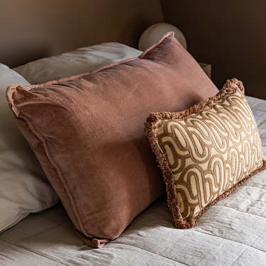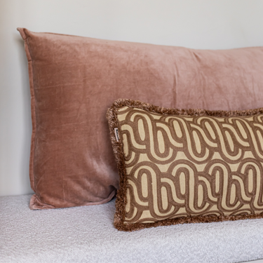 Ben je op zoek naar een kussen dat warmte én karakter toevoegt? Bold Beige heeft het allemaal: een rijke, grafische print in warme bruintinten, een rustige beige basis én speelse franjes rondom. Met de neutrale achterkant kun je het kussen aan beide kanten gebruiken, ideaal om af te wisselen. Het is een echte blikvanger, maar straalt toch rust uit.