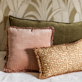 Want to create a powerful yet soft look in your interior? The Fay decorative cushion set combines the best of both worlds. Deep olive green, powder pink, and beige create a surprisingly harmonious combination that exudes warmth, contrast, and elegance. Perfect for a stylish setting with a playful twist.