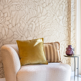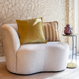 De Luna-set staat prachtig op een zandkleurige bank, een beige fauteuil of een groen bed. Ook ideaal in interieurs met houtaccenten, beige wanden, kleurrijke behangprints of hout.