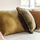 The strength of this set lies in its natural look. The solid pistachio cushion adds softness and freshness, while the olive green fringed cushion adds just that little bit of extra texture. Together, they create a harmonious combination that complements neutral interiors beautifully, but also works well as subtle pops of color against a warmer or darker base.