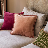 Looking to add a touch of color to your interior, but in a subtle and stylish way? The Nine decorative cushion set is just what you're looking for. It combines a deep mauve hue with soft powder pink and playful fringes. Perfect for those who love a calming base with a touch of warmth and charm.