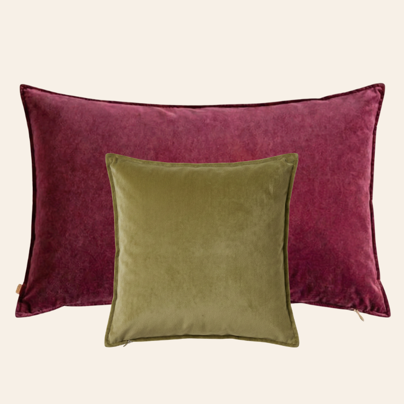 The Louise set combines the XL Magical Mauve cushion (50 x 90 cm) with the 45 x 45 cm Perfect Pistachio cushion. The deep mauve shade creates a deep, elegant base, while the fresh pistachio green adds refinement. Together, they create a stylish combination that instantly adds ambiance to your sofa, armchair, or bed.
