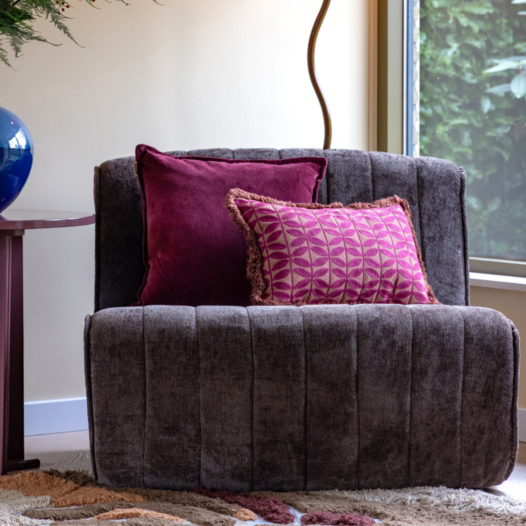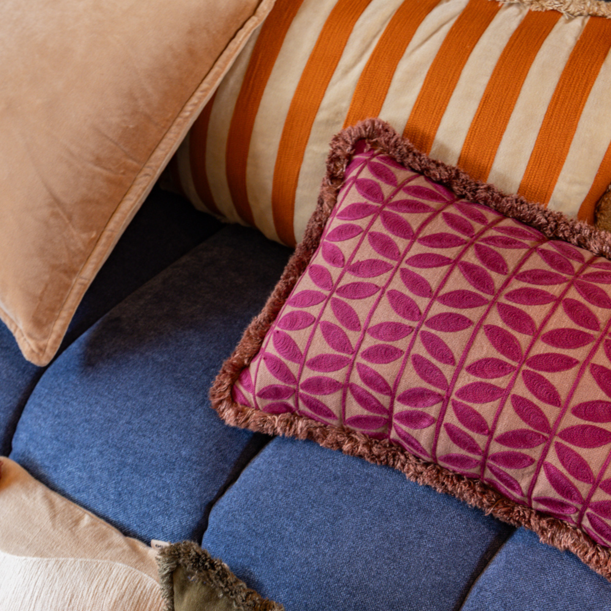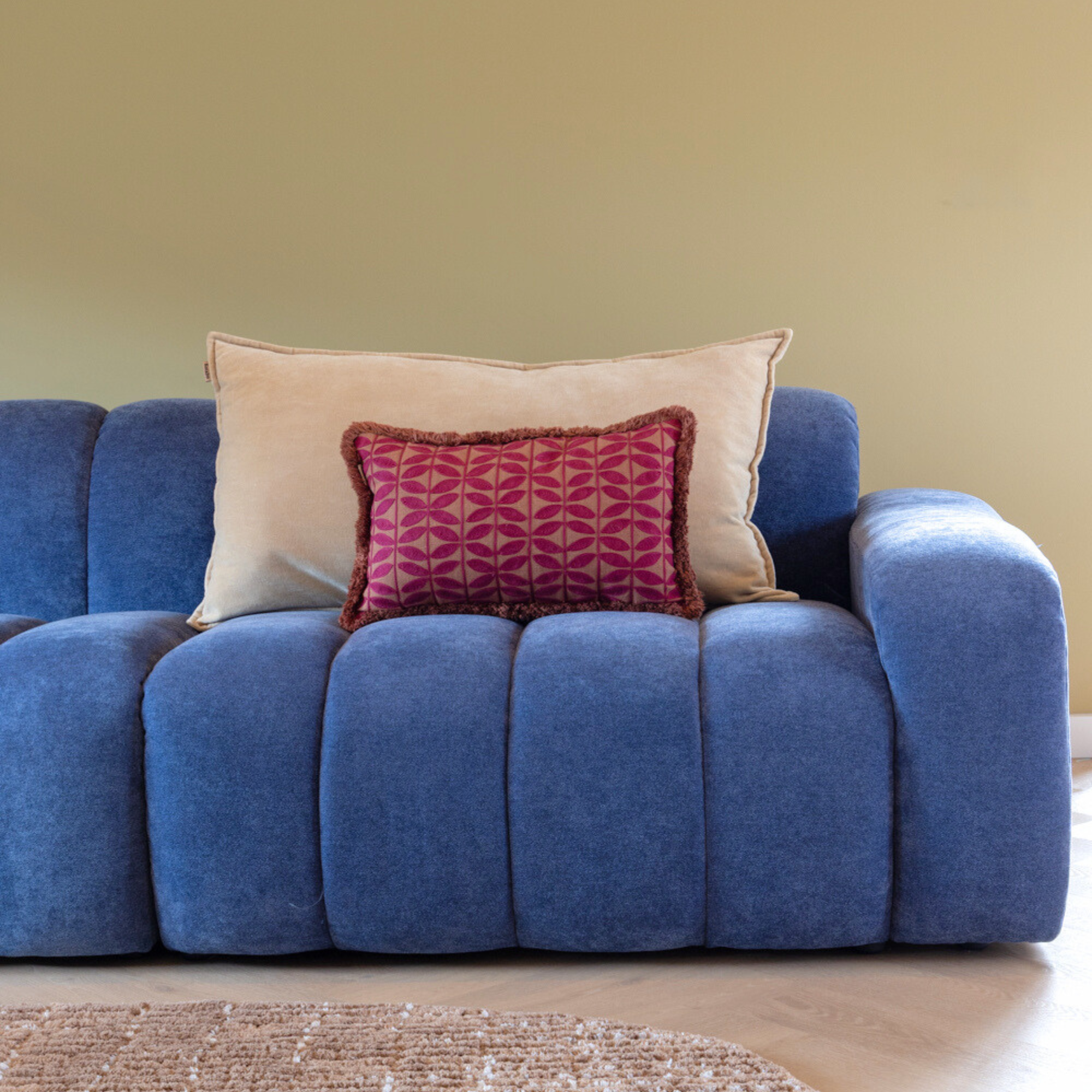 De franjes geven het kussen een speels en luxe accent. De maat van 30 x 50 cm is perfect om te combineren met grotere kussens. Denk aan zachte effen tinten of kleuren in dezelfde kleurfamilie, voor een extra statement.