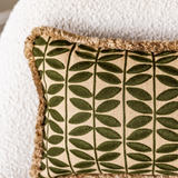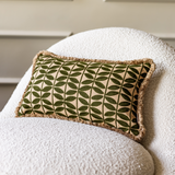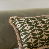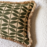 PRE-ORDER Kotabo sierkussen met butterfly print en franjes – 30 x 50 cm – Olive Oasis