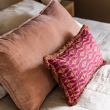 Pretty in Pink is one of those cushions that immediately stands out without being overpowering. That soft pink shade works perfectly with light colors for a fresh look, but also looks stunning with warm earth tones. Its 50 x 90 cm size makes it extra comfortable to lean against and creates a playful contrast with smaller cushions.