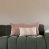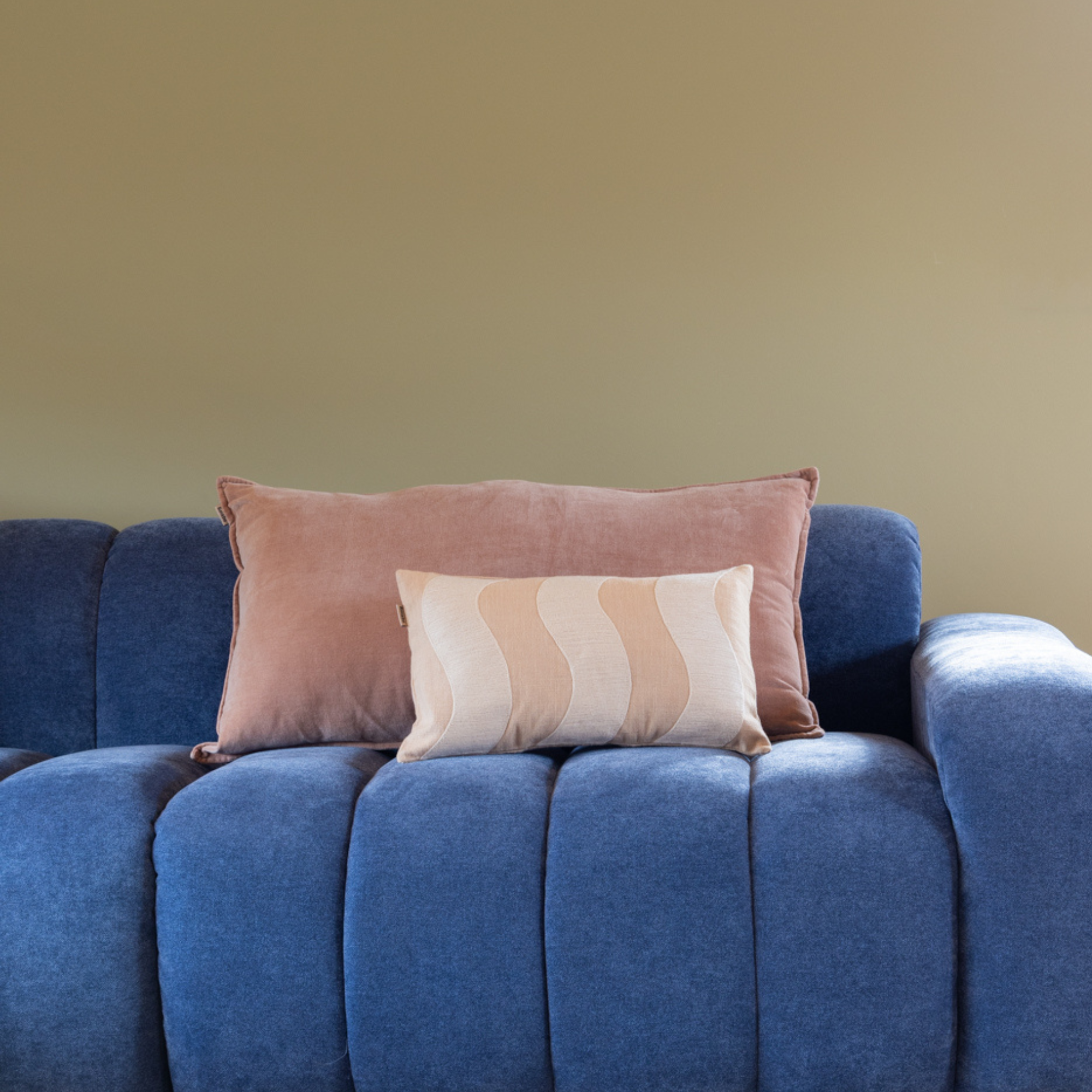 De Elodie set combineert een zachte, vrouwelijke basis met een ingetogen, artistiek accent: het XL‑kussen Pretty in Pink (50 x 90 cm) zorgt voor een warme, lichte uitstraling, terwijl het 30 x 50 cm kussen in Bold Beige met verticale golvenprint een subtiel grafisch detail toevoegt. Samen vormen ze een elegante en harmonieuze combinatie die direct sfeer geeft aan je bank, fauteuil of bed.